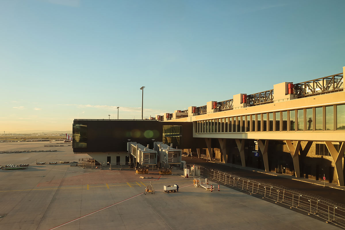 Die Flugsteige H und J entstanden in modularer Bauweise: Sieben beziehungsweise acht identische Teilbauwerke wurden parallel errichtet und nach dem Aushärten monolithisch miteinander verbunden. Dieses Vorgehen ermöglichte einen kontinuierlichen Baufortschritt bei gleichzeitig hoher Ausführungsqualität.