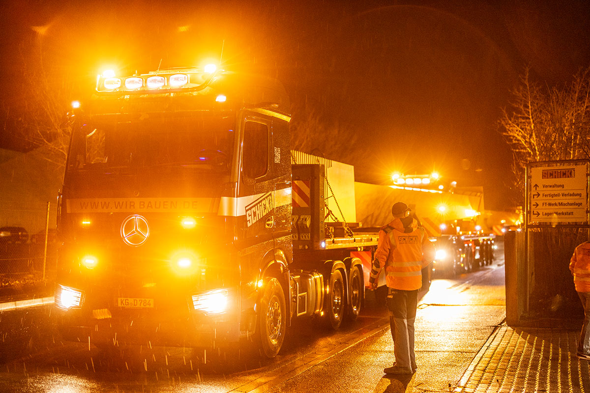 Y-förmig und eingefärbt werden diese ein besonderer Blickfang für alle Reisenden sein. Der Transport der Stützen erfolgt ausschließlich nachts und erfordert spezielle Schwertransporte sowie Transportbegleitung durch eigene Begleitfahrzeuge und die Polizei. Nach Abschluss des Auftrags beginnt SCHiCK mit dem nächsten Projekt am Frankfurter Flughafen – dem Kopfbau für Pier G.