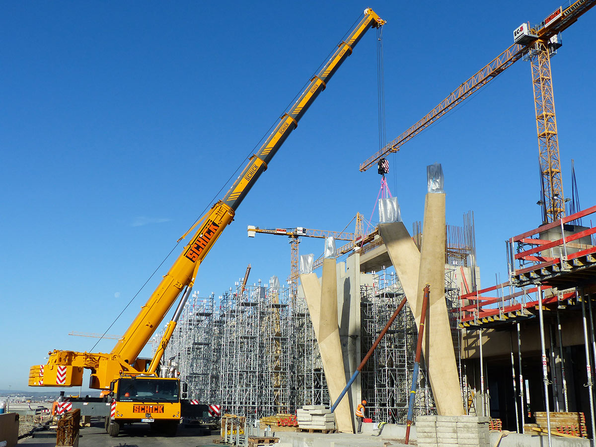 Unter Beteiligung der Anton Schick GmbH entsteht auf dem ehemaligen Gelände der Rhein-Main Air Base das neue Terminal 3 des Frankfurter Flughafens für bis zu 25 Millionen Passagiere jährlich. SCHiCK verantwortet dabei den Bau des Piers H und J sowie des knapp 70 Meter hohen Towers.