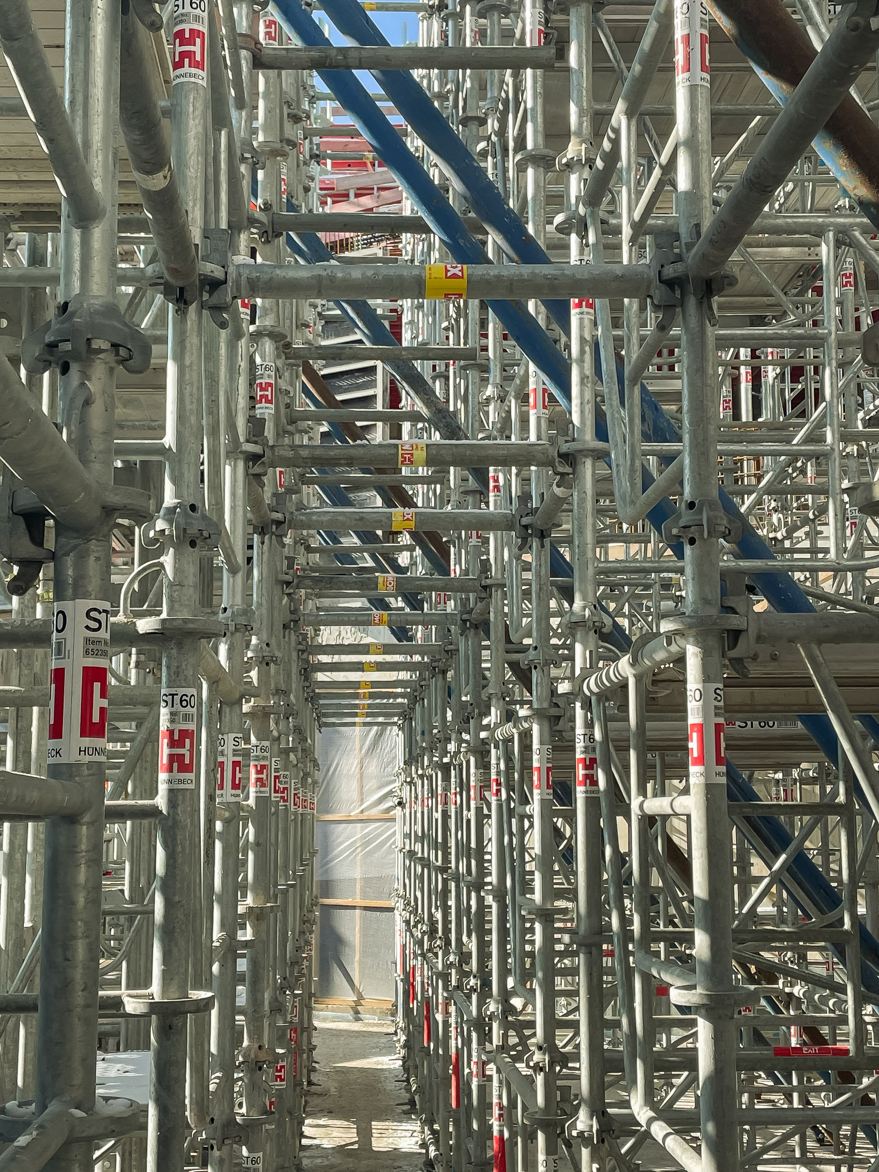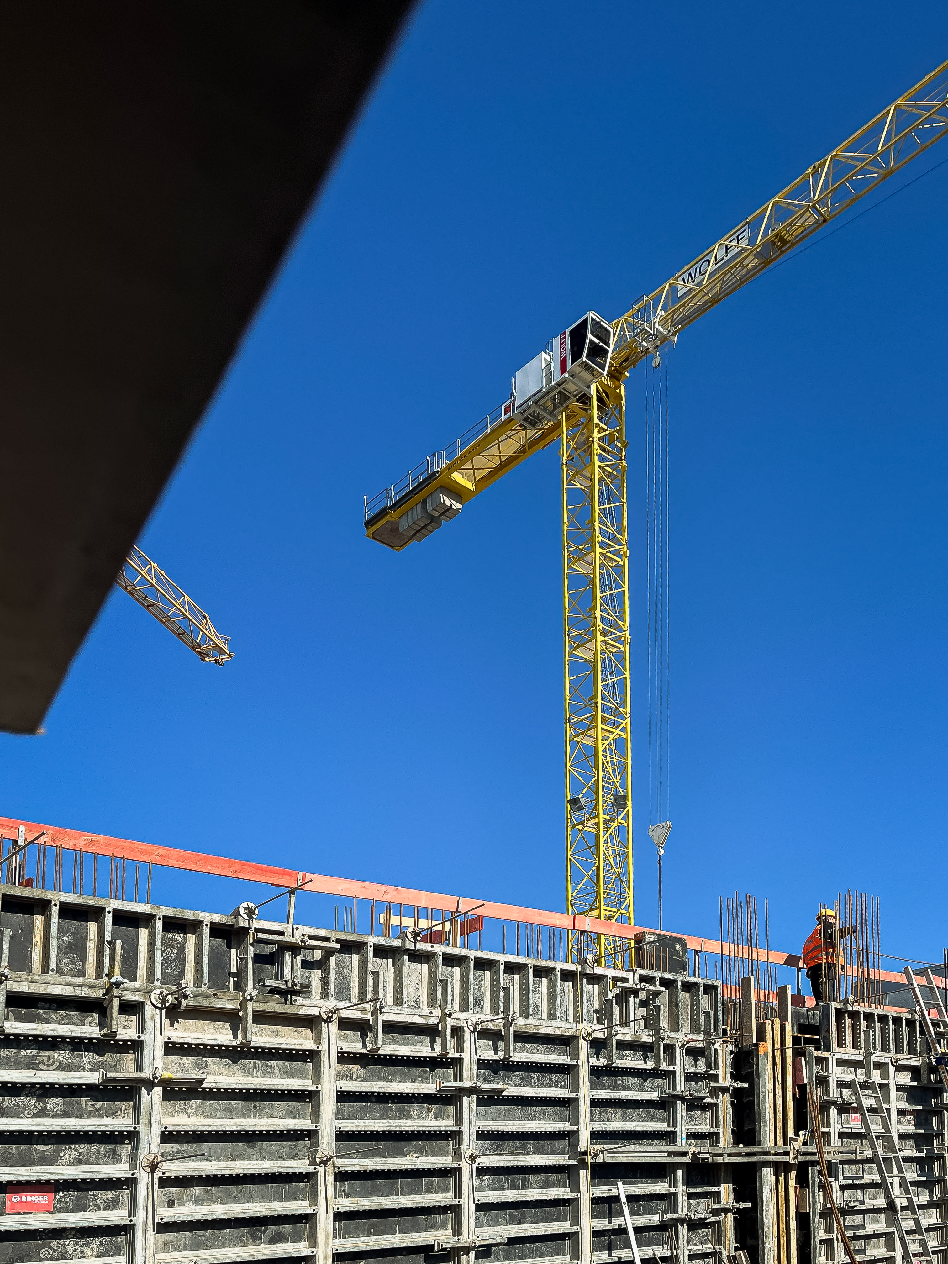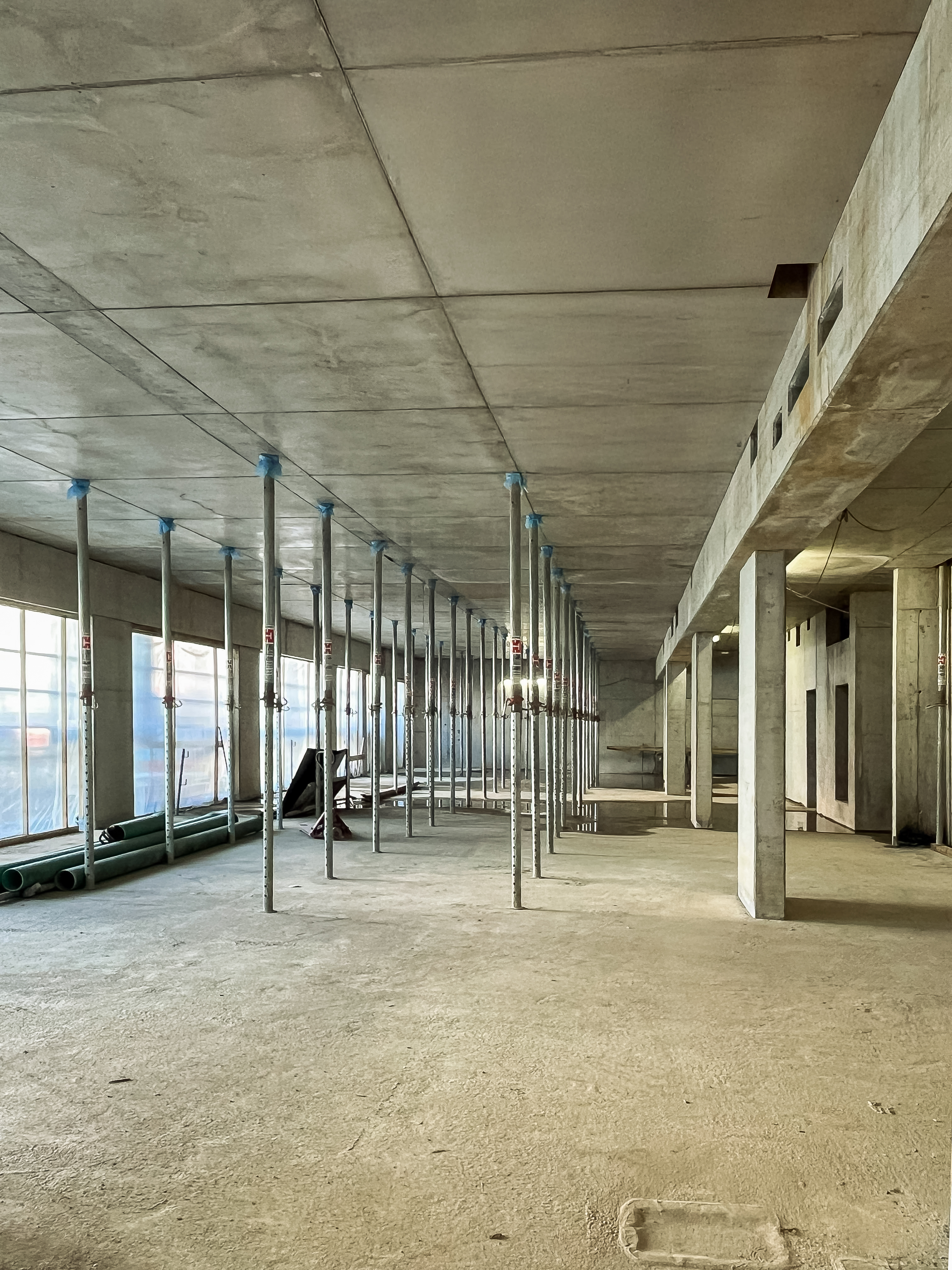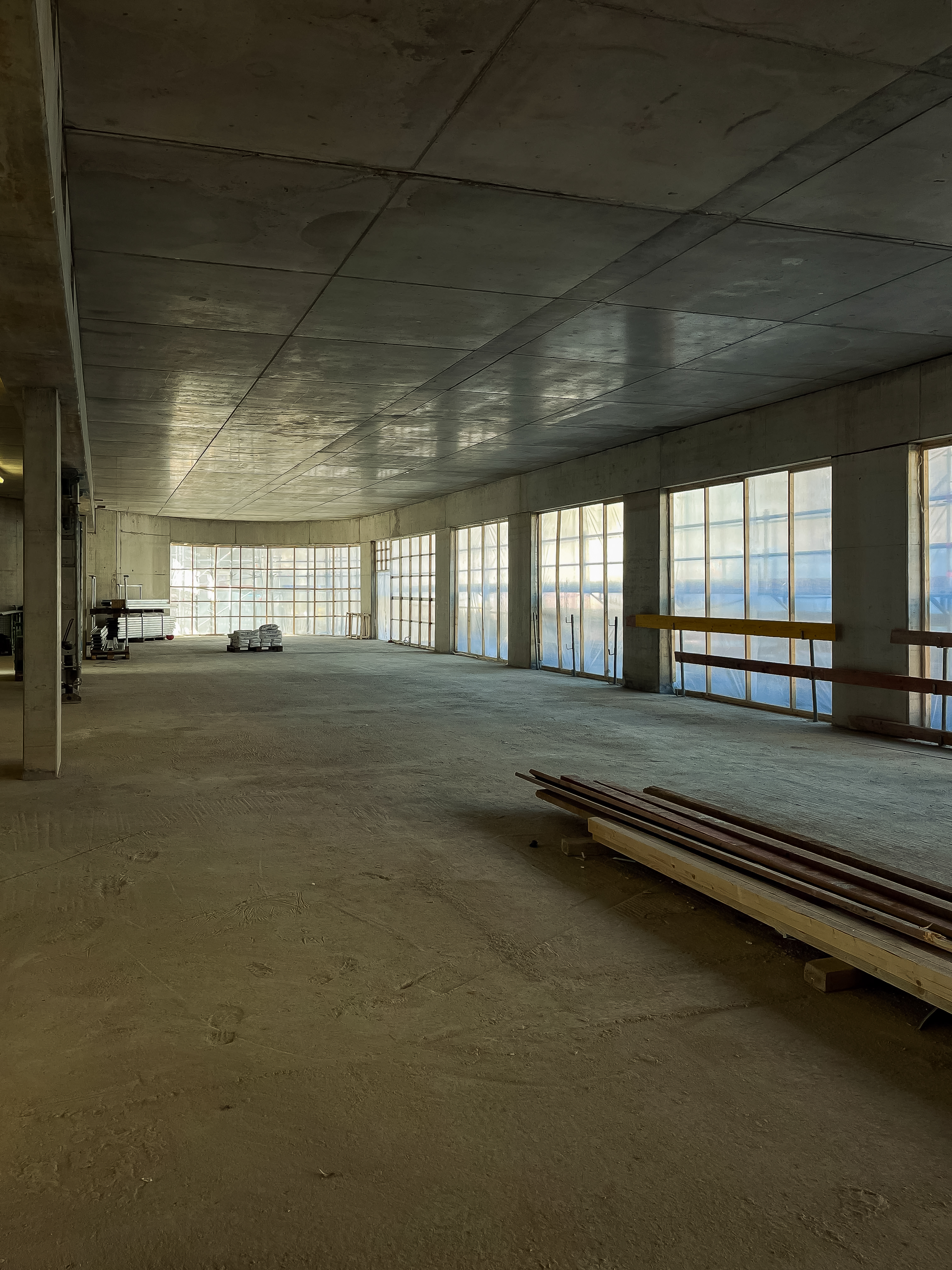 Unser Team verantwortete die gesamten Rohbauarbeiten. Zu den Leistungen gehörten außerdem die Bewehrungsverlegung, die Betonage sowie die Koordination der beteiligten Gewerke. Besonders hervorzuheben ist die enge Zusammenarbeit mit unserem Fertigteilwerk in Bad Kissingen: Hier wurden 36 Sichtbetontreppen der Klasse SB3 gefertigt und nach München geliefert. Einige dieser Treppenläufe wogen bis zu 8,8 Tonnen. Ein eingelegter Natursteinstreifen verleiht den Treppen nicht nur eine hochwertige Optik, sondern dient auch als Kontraststreifen für Menschen mit eingeschränkter Sehkraft.