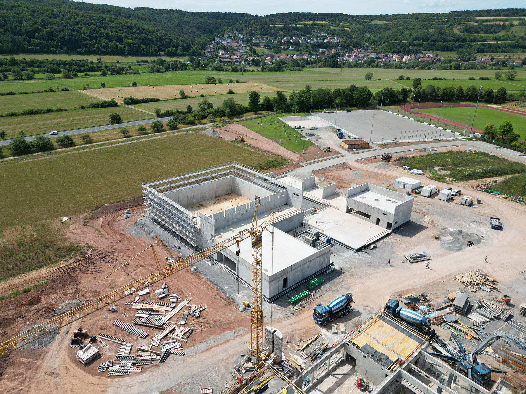 Mit dem neuen Gymnasium in Hammelburg entstand ein moderner Bildungsort, der architektonische Qualität, nachhaltige Baustoffkonzepte und konstruktive Präzision vereint. Von diesem Bauvorhaben profitieren vor allem die Schülerinnen und Schüler, die hier künftig optimale Bedingungen für Lernen, Austausch und sportliche Aktivitäten vorfinden werden.
