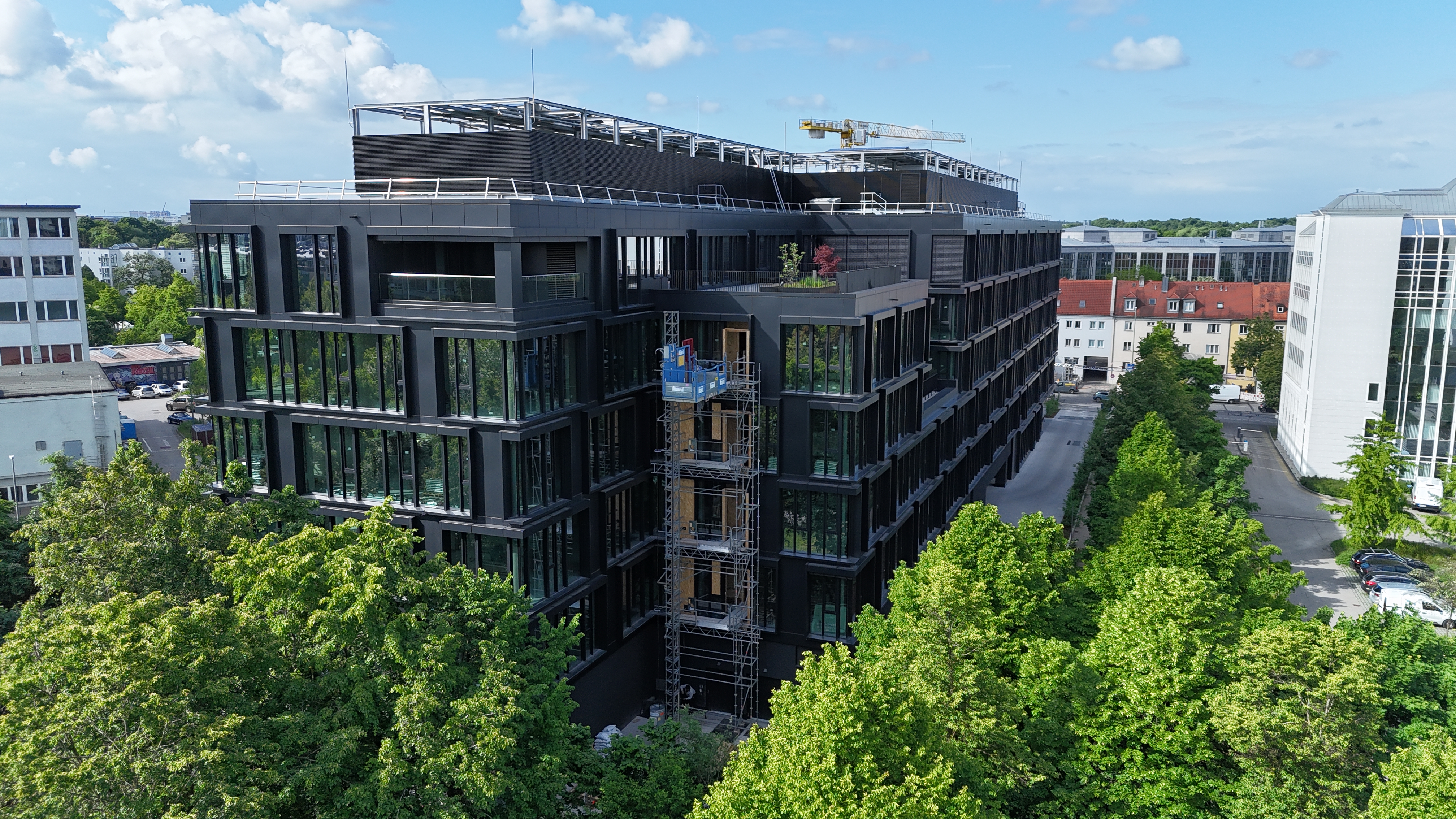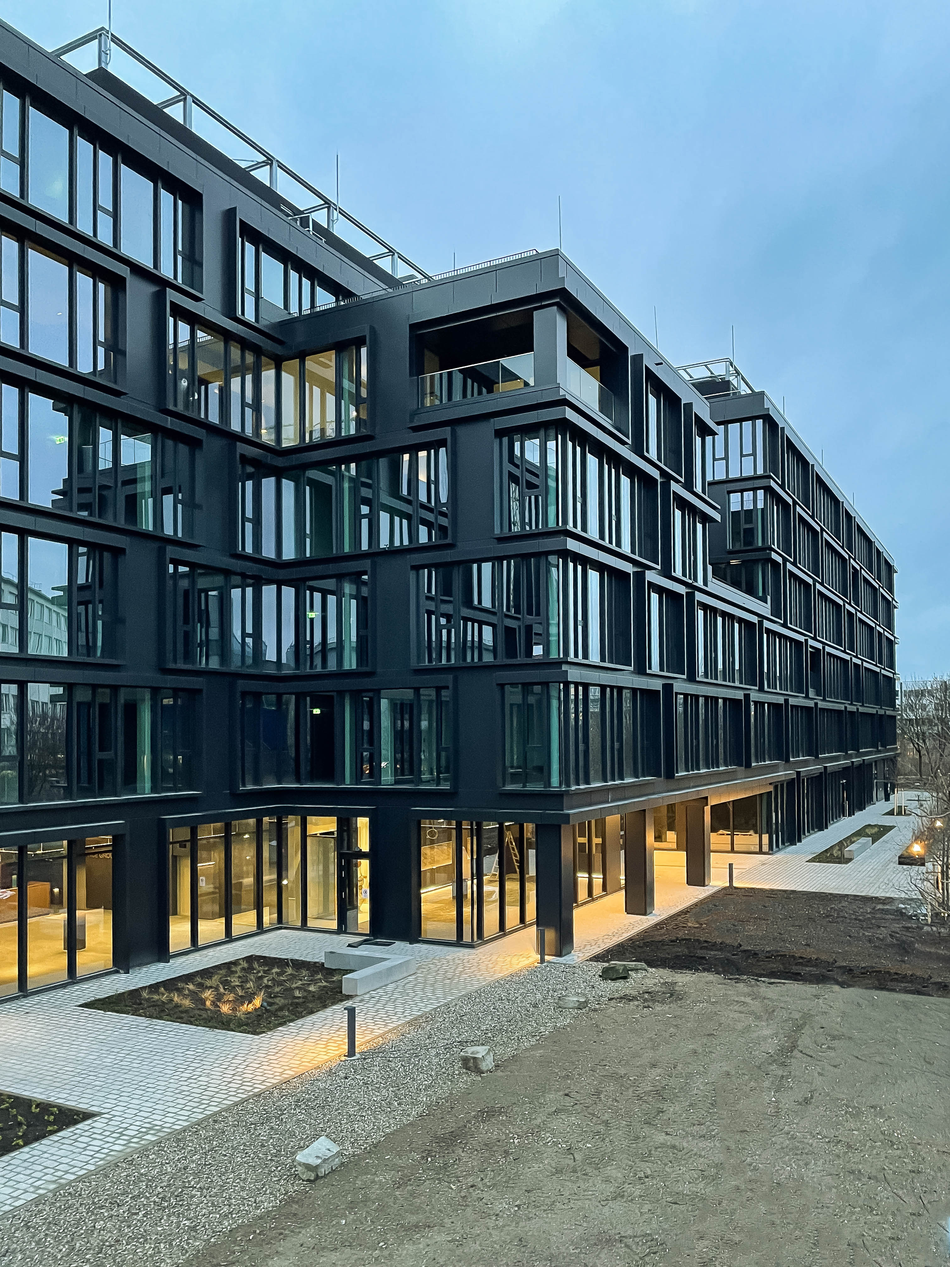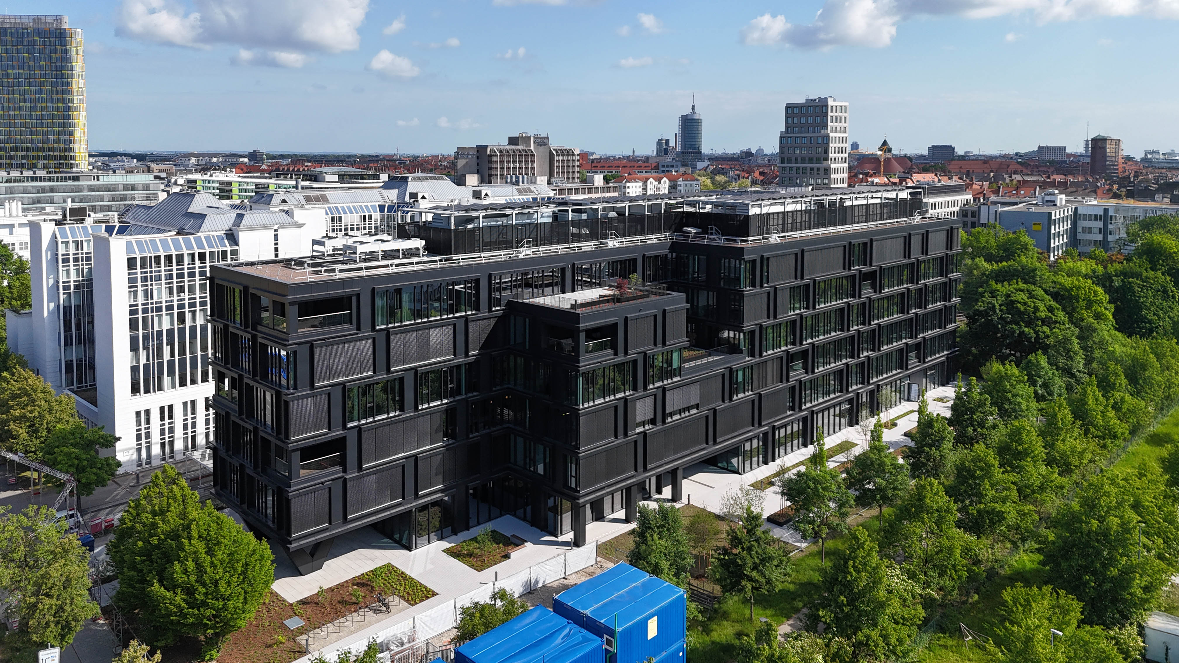 Das Gebäude erstreckt sich über zwei Untergeschosse und sechs oberirdische Vollgeschosse, die durch insgesamt drei Treppenhäuser verbunden sind. Während der Umsetzung haben wir konsequent die vorgegebenen LEED-Gold-Standards eingehalten, um gemeinsam mit dem oder der Auftraggeber:in neue Maßstäbe für einen zukunftsorientierten und ökologischen Arbeitsplatz in München zu setzen. Final wurde das Gebäude auf Grund der guten Planung und Ausführung LEED-Platin zertifiziert.