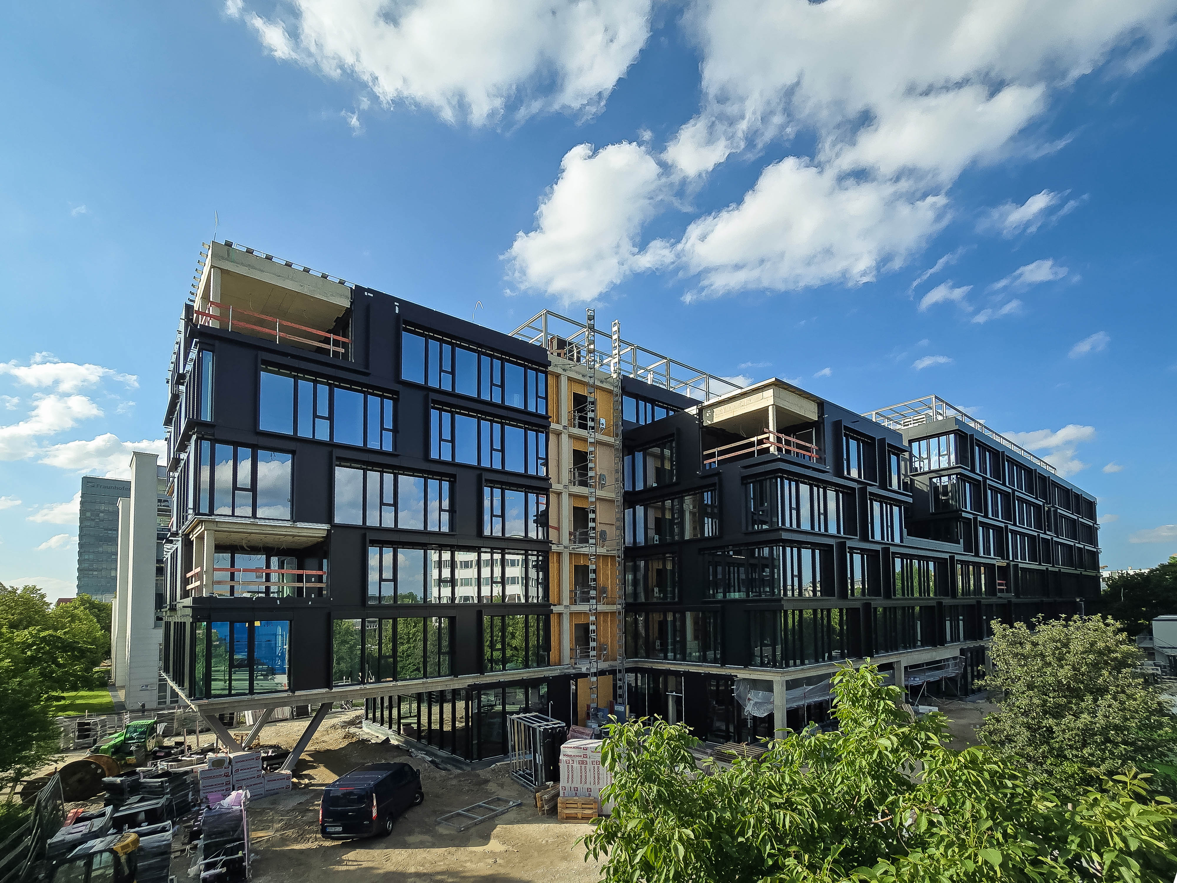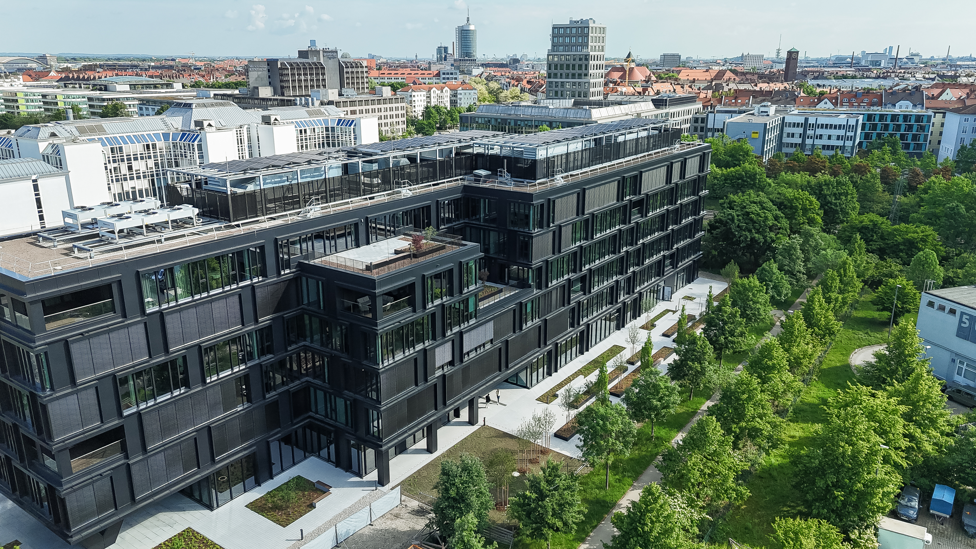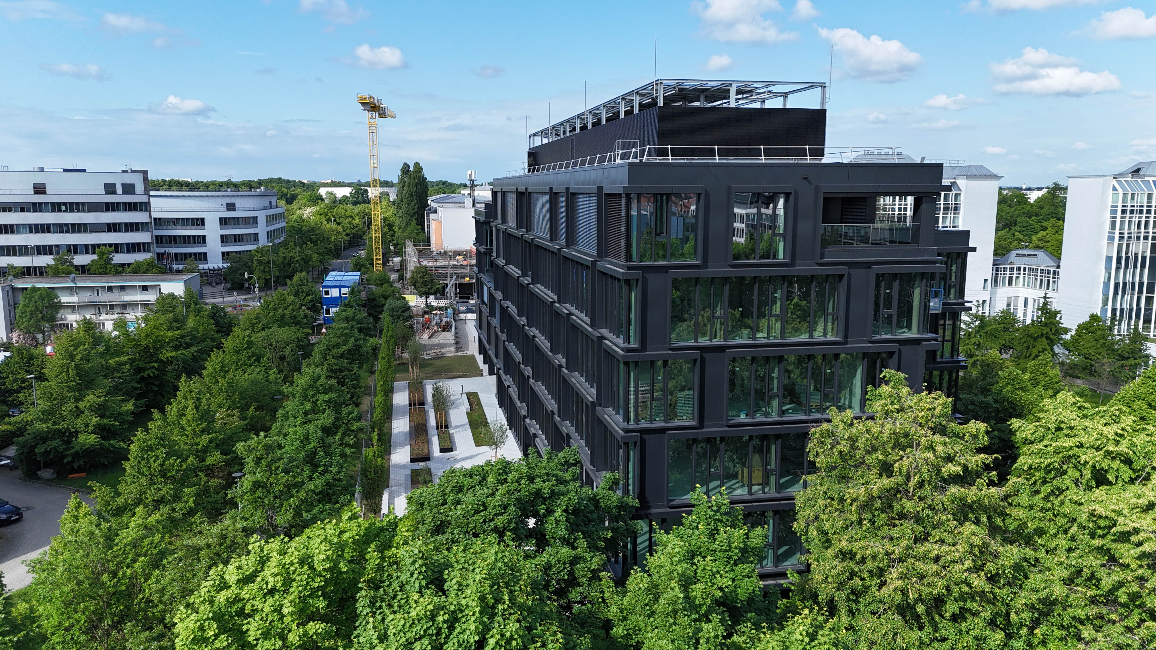 Das Gebäude erstreckt sich über zwei Untergeschosse und sechs oberirdische Vollgeschosse, die durch insgesamt drei Treppenhäuser verbunden sind. Während der Umsetzung haben wir konsequent die vorgegebenen LEED-Gold-Standards eingehalten, um gemeinsam mit dem oder der Auftraggeber:in neue Maßstäbe für einen zukunftsorientierten und ökologischen Arbeitsplatz in München zu setzen. Final wurde das Gebäude auf Grund der guten Planung und Ausführung LEED-Platin zertifiziert.
