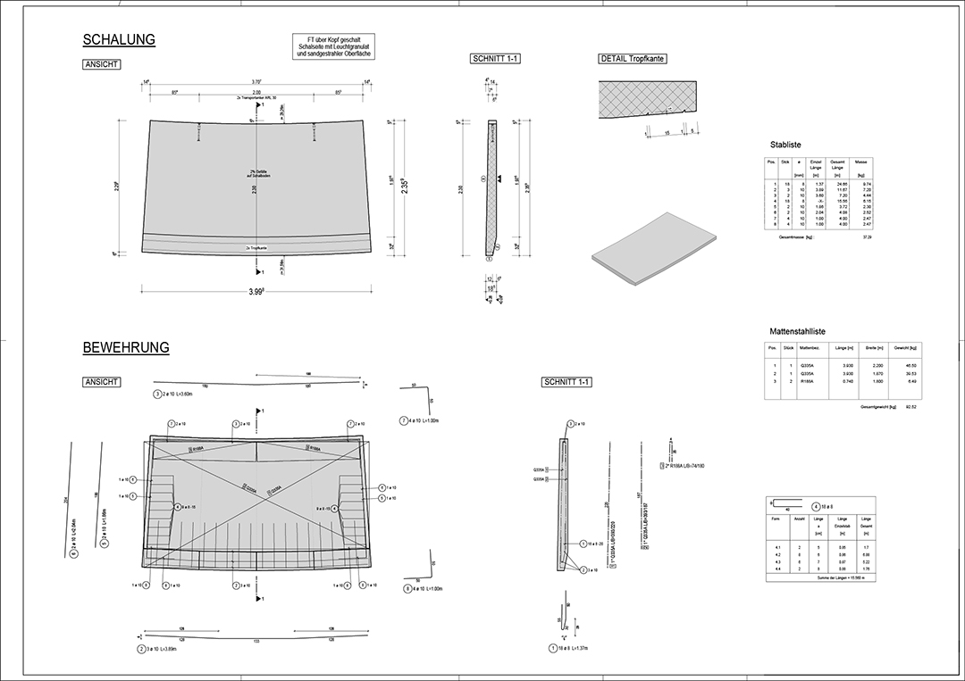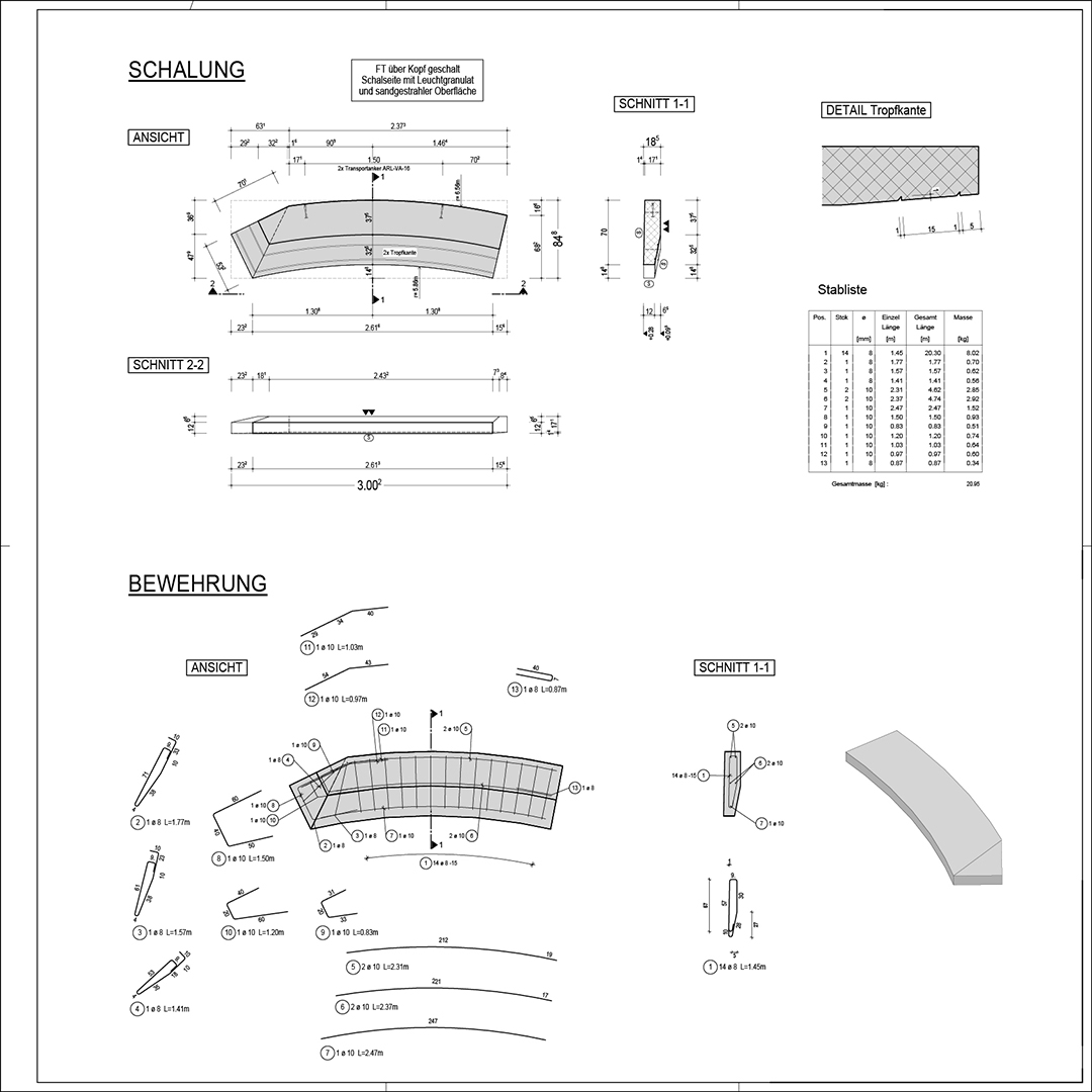 Im Rahmen dieses Projekts werden insgesamt 53 Bauteile gefertigt, die verschiedene Bereiche des Bads ausstatten. Dazu gehören unter anderem Umrandungsplatten für das Außenbecken, Liegedecks, Stegplatten sowie Duschwannen. Insgesamt umfasst das Projekt die Herstellung von 47 Kubikmetern Weißbeton, der speziell für diese Anwendung entwickelt wurde.