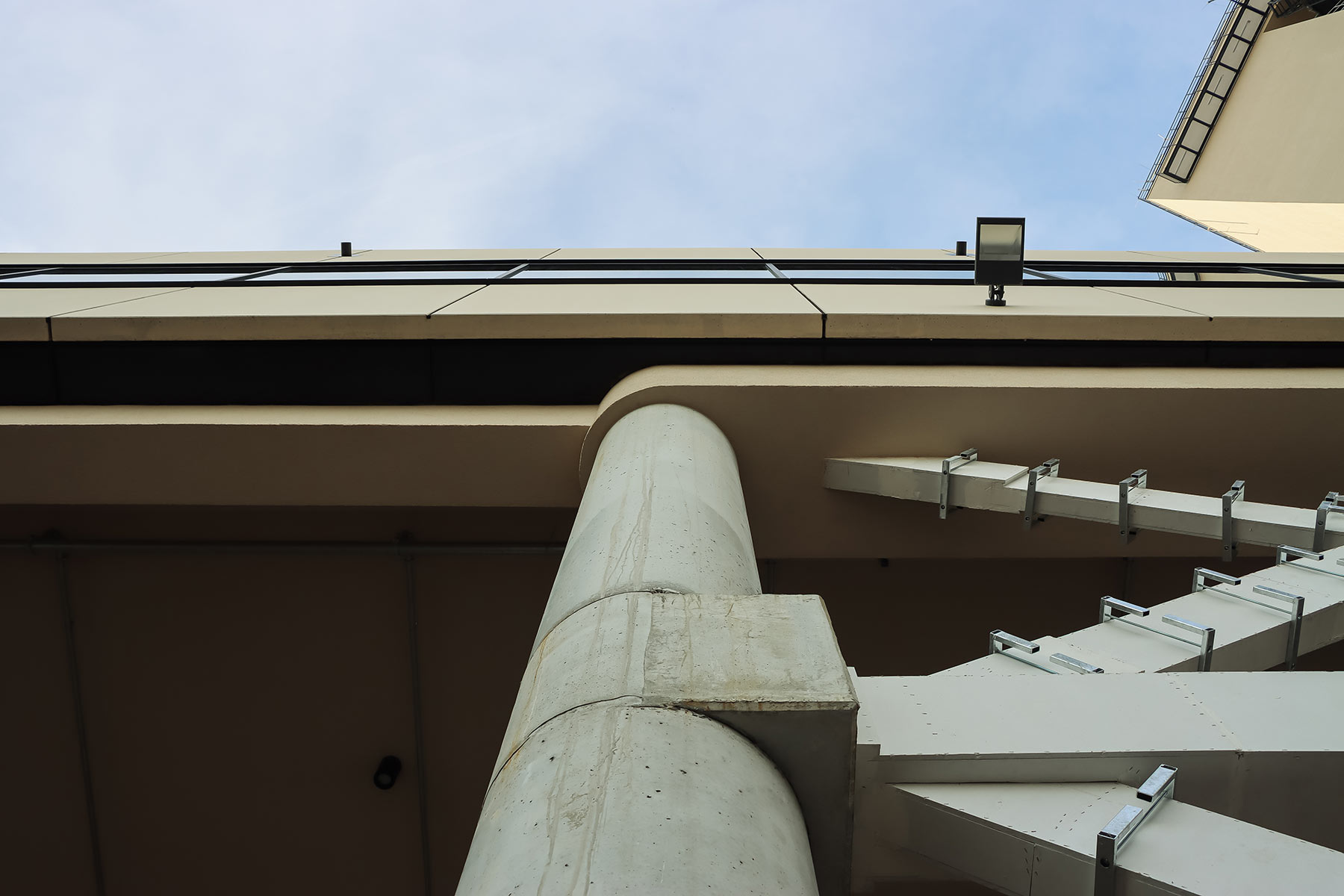 Zwei markante Oberlichter und drei Technikzentralen auf dem Dach prägen die Silhouette und sorgen für Licht und Funktion. Abgeschlossen wurde das Projekt mit einer Dachabdichtung samt Begrünung, die sowohl gestalterische als auch ökologische Akzente setzt.