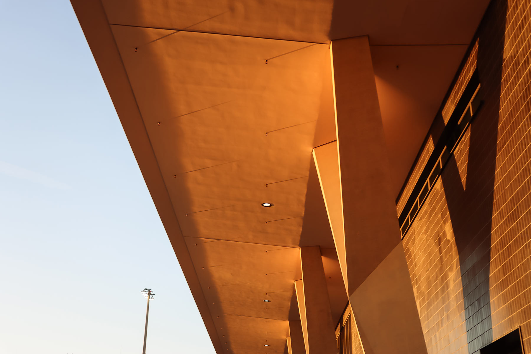Ein besonderes Highlight sind die rund 650 Sitzbänke, die in unserem Betonfertigteilwerk in Bad Kissingen gefertigt und von unserem eigenen Montageteam vor Ort installiert wurden. Die präzise ausgeführten Fertigteile und die scheinbar schwebende Konstruktion des Bauwerks unterstreichen unser Know-how im Spezialtief- und Rohbau am Flughafen Frankfurt.